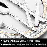 This cutlery set with organizer come with 8 dinner forks, 8 salad forks, 8 dinner knives, 8 dinner spoons, 8 teaspoons, 8 steak knives and a silverware drawer organizer with 6 compartments. Ideal for Restaurant, weddings, catered events, party, family reunion, upscale catering, or home dinner, and much more. This flatware set has a classic silhouette with clean lines and polish-finish surface in all silver, a good choice to go with your existing tableware. The smooth edge of the handle is pleasure to hold, appropriate weight and perfect balance are added to ensure maximum comfort during use. 1.5 to 2 times the thickness of ordinary flatware set, thick construction will not bend or flimsy after heavy use, heavy-weight feel with exceptional balance, each eating utensil is a pleasure to hold. Made of premium food-grade stainless steel, providing the longest term value and the best properties, it offers nice resistance to rust and corrosion to get the most sturdy and healthy experience while using, never bend in daily use.